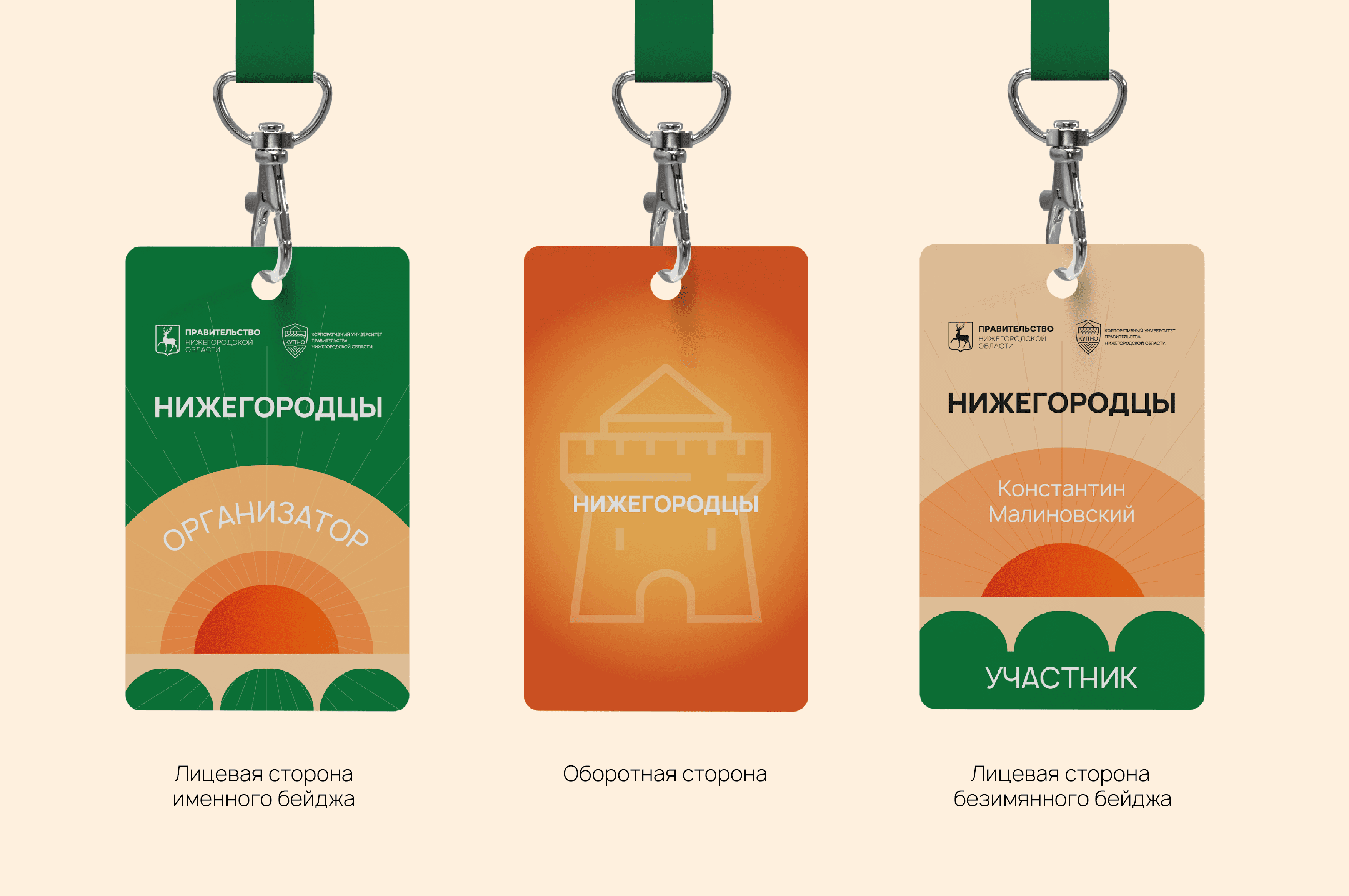 На старте у меня был только логотип в виде слова «Нижегородцы», ранее выбранный шрифт и всего сутки на выполнение. Всё остальное — от идеи до визуальных носителей — я разработала самостоятельно.
