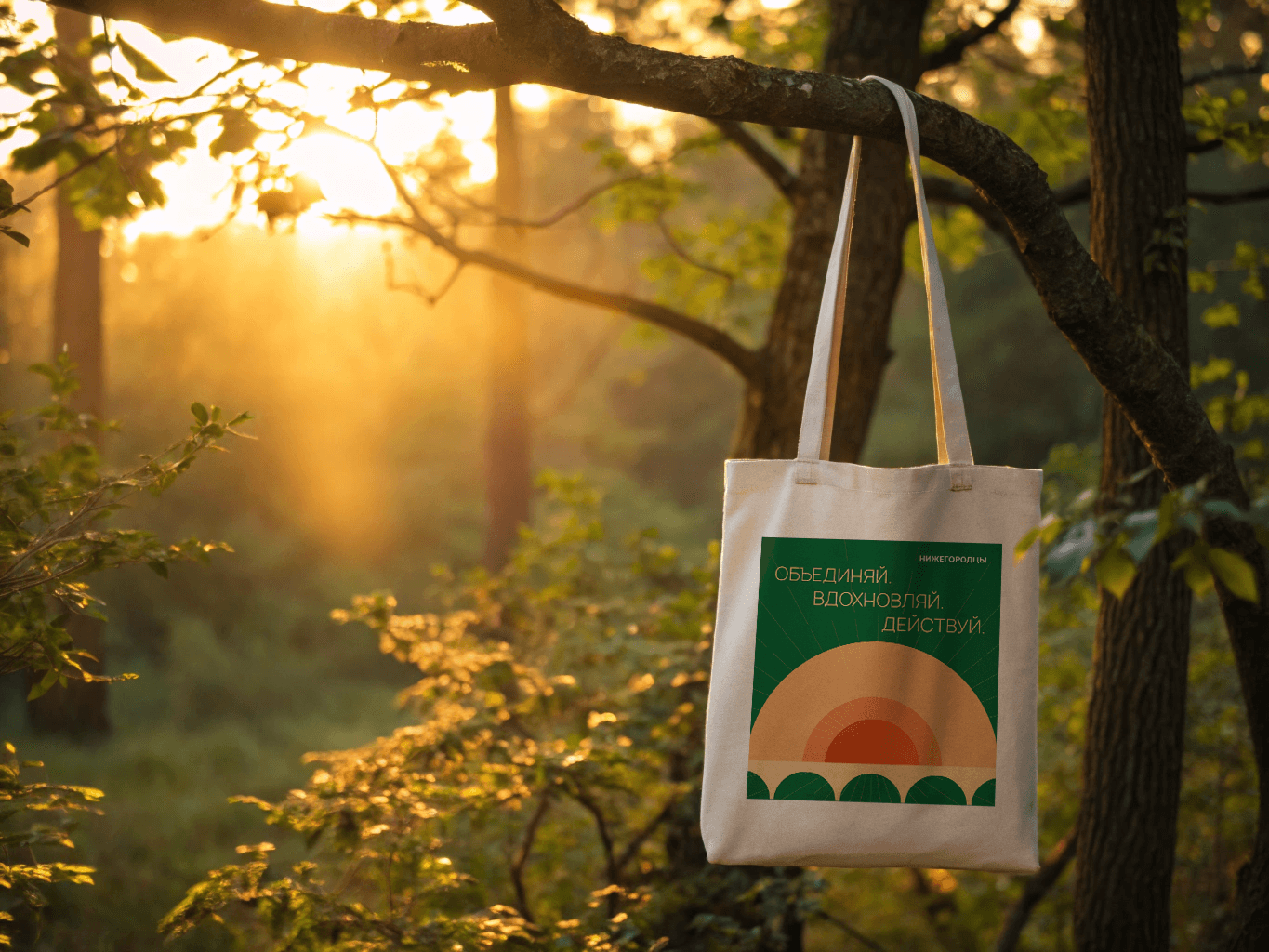 Я соединила в фирменном стиле самые яркие ассоциации с Нижегородской областью — закаты, солнце, тепло, мосты на реках и зелёные луга, — проведя параллель между образами родного края и миссией проекта по развитию муниципальных территорий и укреплению связей между людьми.